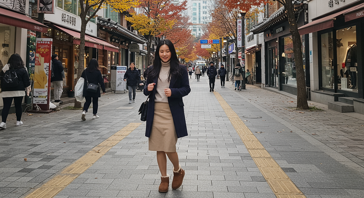 아웃웨어와의 컬러 조화도 중요합니다. 대비되는 색상의 코트나 패딩과 매치하면 어그 메리제인이 포인트 아이템으로 활약합니다. 예를 들어, 블랙 코트에 카멜 컬러의 어그 메리제인을 매치하거나, 베이지 패딩에 버건디 컬러를 매치하는 방식입니다.